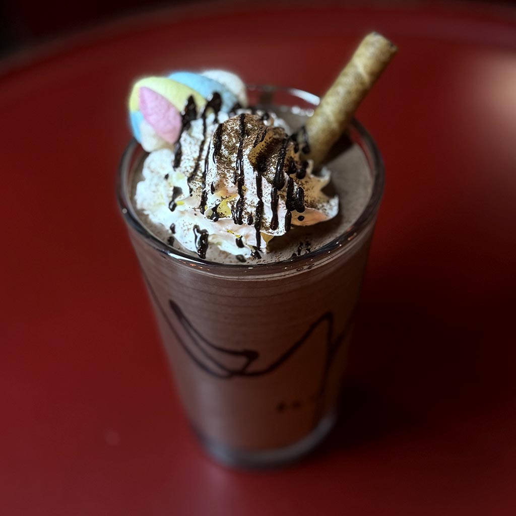 بستنی شکلات + سس شکلات + پودر کاکائو + شیر